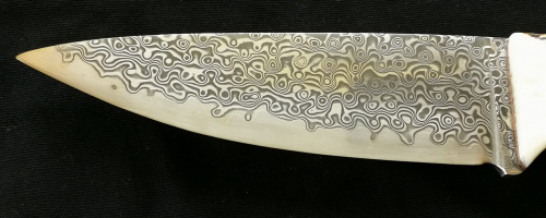 Klinge:   Japanischer Damaszenerstahl,  CORE „wild“. Hohe Schnitthaltig- und Verschleißfestigkeit, rostbeständig, harte Mittellage aus VG10, ca. 60-61 HRC.